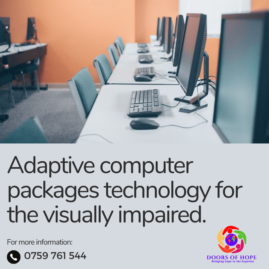 EXCITING NEWS! As part of our commitment to fostering an inclusive learning environment, Doors of Hope is now offering Adaptive Computer Packages Technology for the visually impaired. For more information, call 0759761544.
